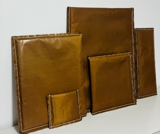 Heat-resistant pads for heat presses that create a flat, even surface for applying heat transfers, vinyl, and other decorations by lifting the garment and allowing seams, buttons, and zippers to sink into the soft core.