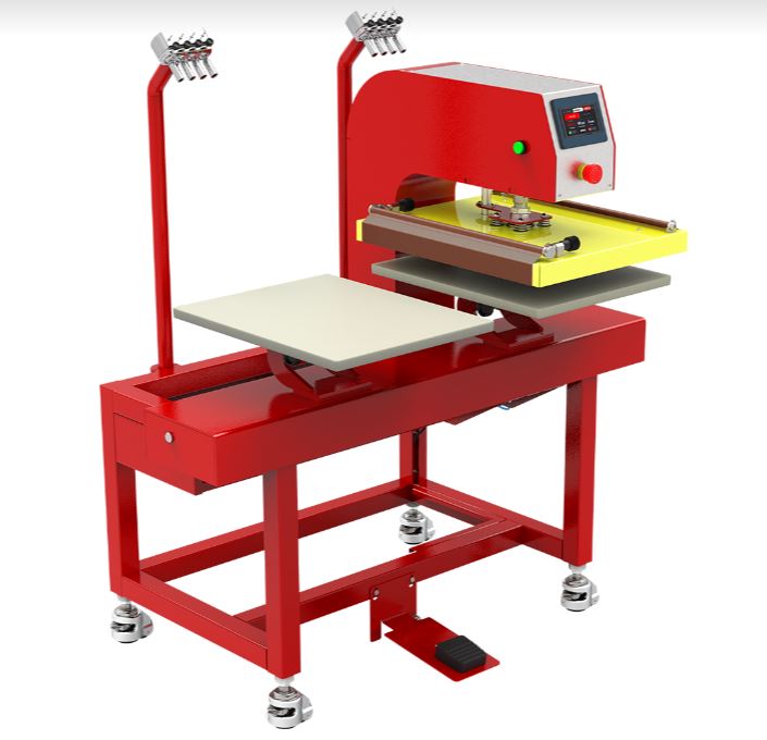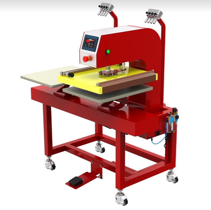 Boost production with the Anatol Two Station Automatic Heat Transfer Press—a fully pneumatic solution designed to apply heat transfers, foil, and other heat-applied decorations with speed and consistency. Unlike manual clamshell presses, this automatic unit increases efficiency with minimal operator effort.